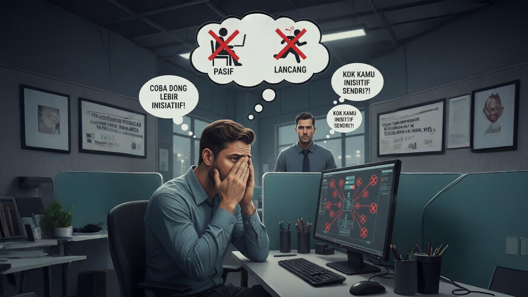 Dalam praktik organisasi sering dijumpai fenomena di mana karyawan yang telah menyelesaikan dan menyerahkan pekerjaannya kepada karyawan lain tetap dipersalahkan ketika proses selanjutnya mengalami stagnasi. Argumen yang digunakan relatif seragam: individu tersebut dianggap tidak cukup proaktif karena tidak terus-menerus melakukan follow-up. Logika ini bermasalah secara konseptual. Ketika suatu tugas telah dilimpahkan dan diterima oleh pihak lain, locus of responsibility secara formal seharusnya telah berpindah. Menuntut pihak sebelumnya untuk tetap bertanggung jawab atas progres berikutnya merupakan bentuk pengingkaran terhadap prinsip dasar delegasi. Dalam kerangka ini, proaktivitas tidak lagi dipahami sebagai inisiatif sukarela bernilai tambah, melainkan sebagai kewajiban implisit yang tidak memiliki batas. Akibatnya, kegagalan sistemik disederhanakan menjadi kegagalan individu, sementara akar masalah struktural diabaikan.